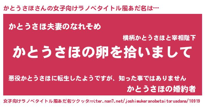 | 男性向けラノベタイトル風あだ名 | 『かとうさほの嫁は女の子じゃないと思った?』 |