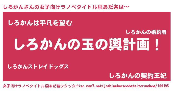 | 胡散臭い通販商品みたいなあだ名 | 『全米が絶賛したサプリメント…その名も「しろかん」』 |