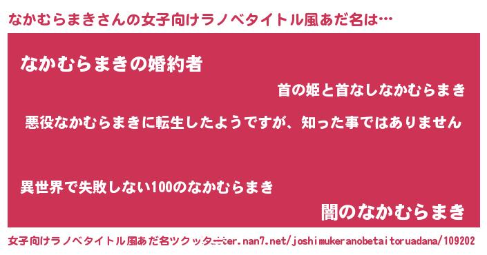 | 男性向けラノベタイトル風あだ名 | 『この素晴らしい世界になかむらまきを!』 |