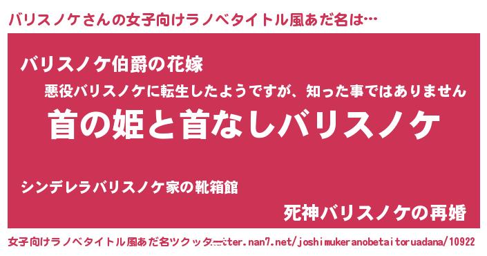 | 男性向けラノベタイトル風あだ名 | 『はたらくバリスノケさま!』 |