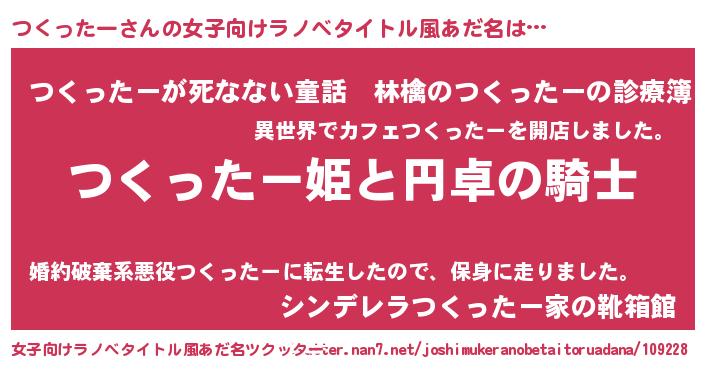 男性向けラノベタイトル風あだ名 | 『ツクッターアートオンライン』 |