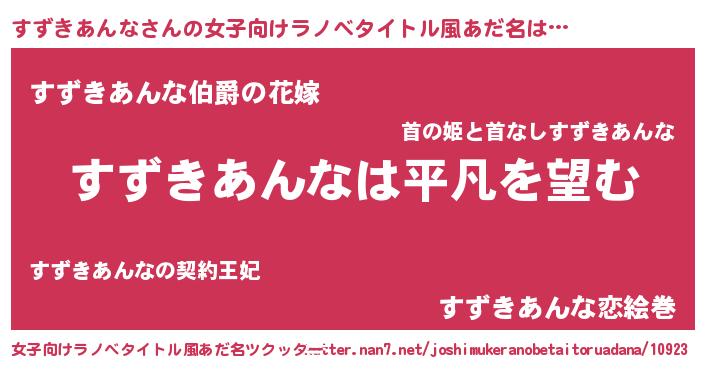 | 男性向けラノベタイトル風あだ名 | 『ダンジョンにすずきあんなを求めるのは間違っているだろうか』 |