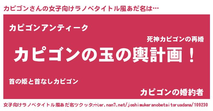 | ヘコむあだ名 | 『酢こんぶ』『カピにゅー』 |