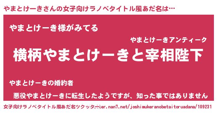 | 意味不明あだ名 | 『とにかく怪しいやまとけーき』 |
