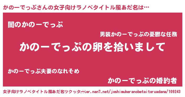 | 男性向けラノベタイトル風あだ名 | 『ダンジョンにかのーでっぷを求めるのは間違っているだろうか』 |