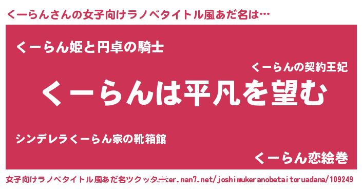 | 胡散臭い通販商品みたいなあだ名 | 『信頼と実績のサプリメント…その名も「くーらん」』 |