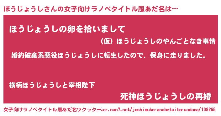 | 料理風あだ名 | 『ほうじょうしごはん』 |
