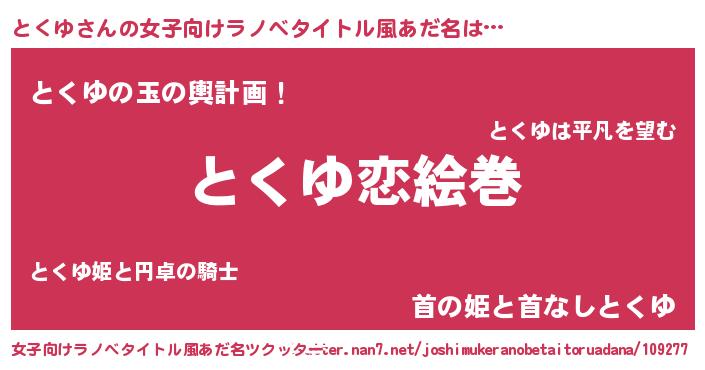 | ヒーロー風カッコイイあだ名 | 『慈愛の使者とくゆ』『炎刃騎士トク』 |