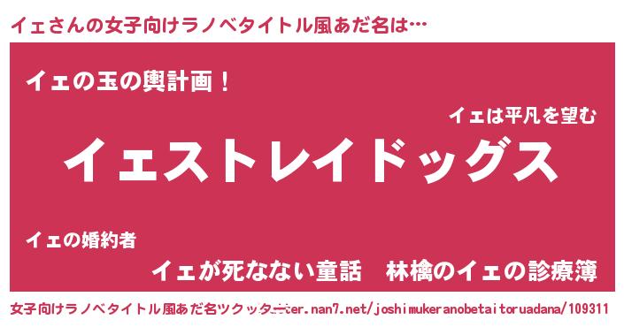 | 男性向けラノベタイトル風あだ名 | 『Re:イェから始める異世界生活』 |