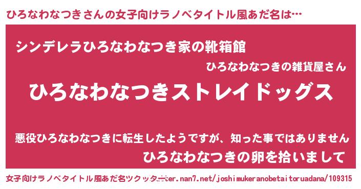 | 男性向けラノベタイトル風あだ名 | 『Re:ひろなわなつきから始める異世界生活』 |