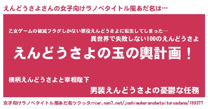 | 胡散臭い通販商品みたいなあだ名 | 『あなたにだけ特別に提供する世界で10本だけ現存している希少なブランデー…その名も「えんどうさよ」』 |