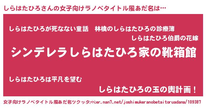 | 意味不明あだ名 | 『住所不定無職しらはたひろ(62歳)』 |