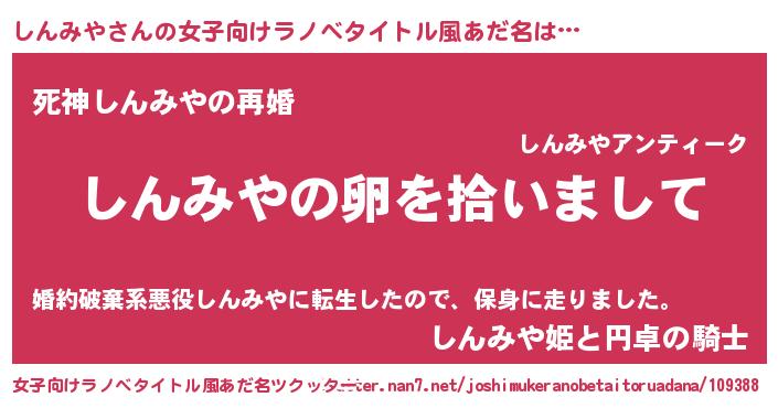 | 男性向けラノベタイトル風あだ名 | 『ダンジョンにしんみやを求めるのは間違っているだろうか』 |