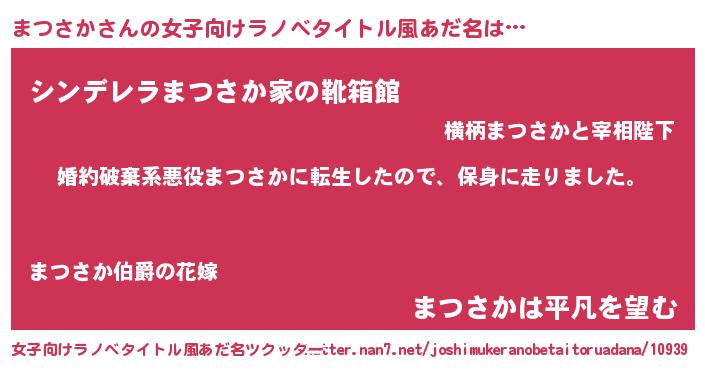| 胡散臭い通販商品みたいなあだ名 | 『信頼と実績のサプリメント…その名も「まつさか」』 |