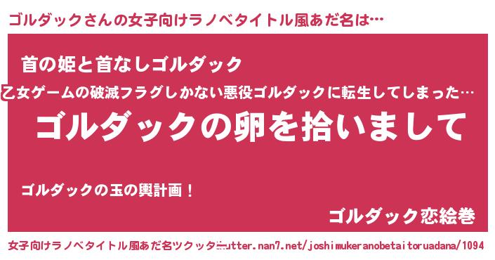 | 胡散臭い通販商品みたいなあだ名 | 『伝統あるネックレス…その名も「ゴルダック」』 |
