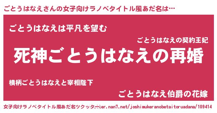 | 男性向けラノベタイトル風あだ名 | 『ノーゲーム・ノーゴトウハナエ』 |