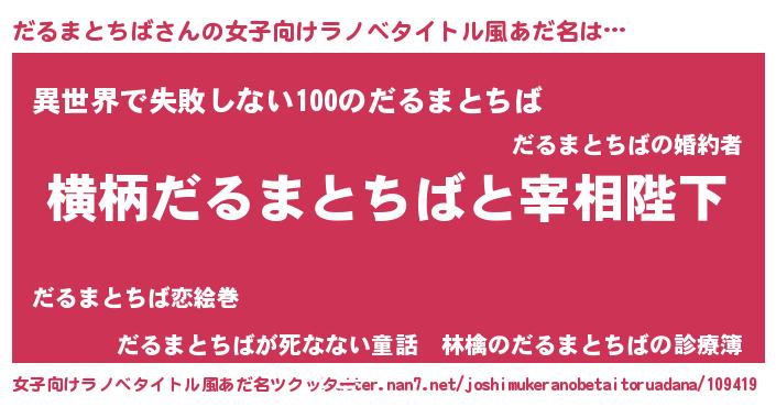 | 意味不明あだ名 | 『永久保存だるまとちば』 |