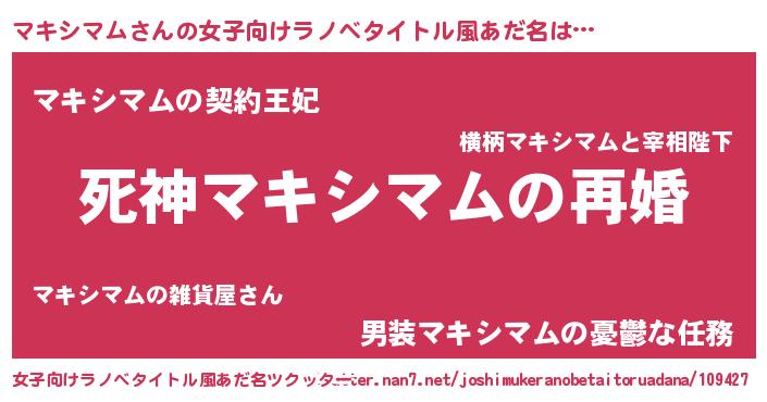 | 男性向けラノベタイトル風あだ名 | 『ノーゲーム・ノーマキシマム』 |
