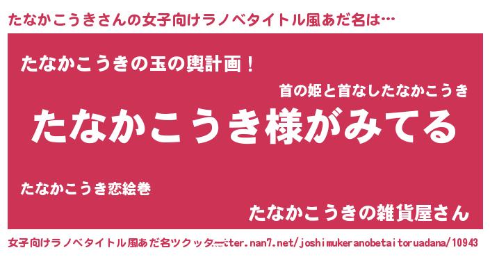 | ポケモン風あだ名 | 『ヒタナカコウキ』『タナキング』 |