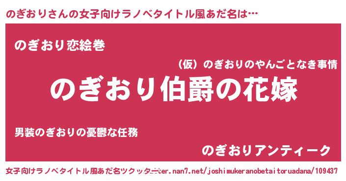 | 男性向けラノベタイトル風あだ名 | 『やはりのぎおりの青春ラブコメはまちがっている 』 |