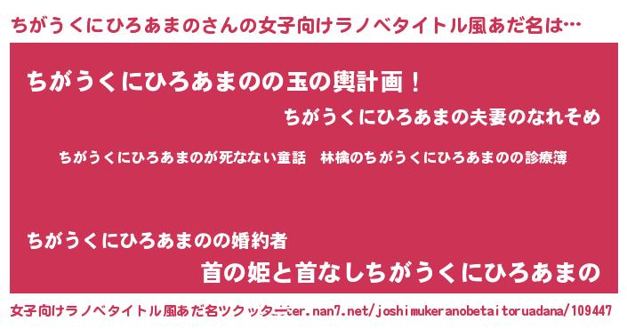 | 男性向けラノベタイトル風あだ名 | 『魔弾の王とちがうくにひろあまの』 |