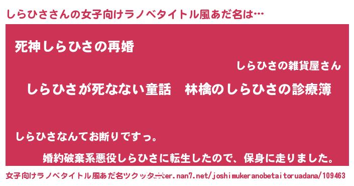 | 男性向けラノベタイトル風あだ名 | 『魔弾の王としらひさ』 |