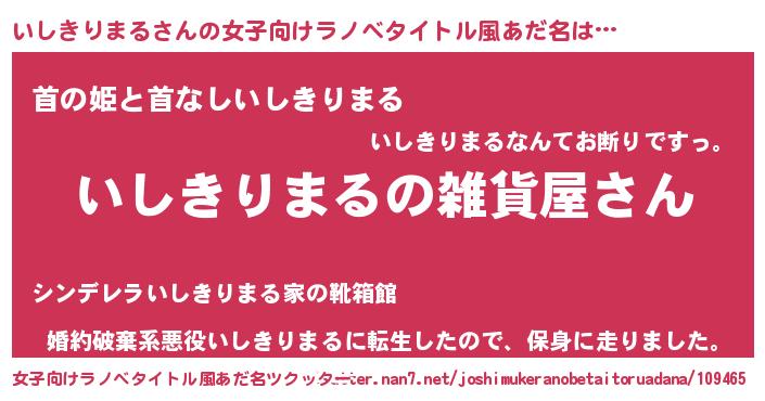 | 男性向けラノベタイトル風あだ名 | 『やはりいしきりまるの青春ラブコメはまちがっている 』 |