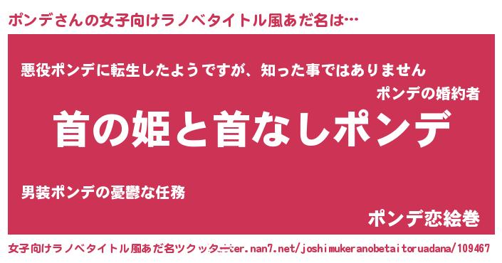 | 意味不明あだ名 | 『住所不定無職ポンデ(6歳)』『自称ポンデ』 |