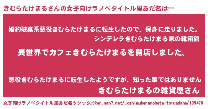 | ヘコむあだ名 | 『きむらたけまる(笑)』『なまこ酢』 |