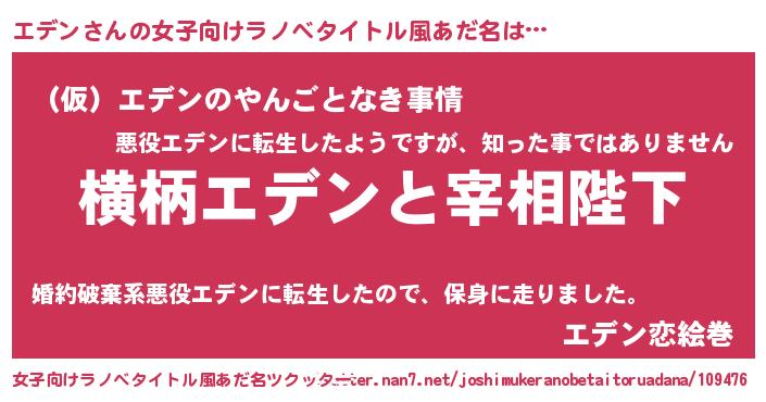 | 男性向けラノベタイトル風あだ名 | 『エデンに滅ぼされるだけの簡単なお仕事です』 |