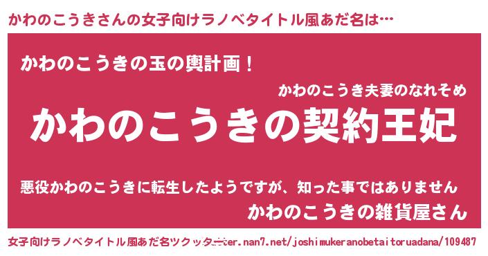 | ファンタジー風あだ名 | 『カワディッシュ』『ユリカワヴァット』 |