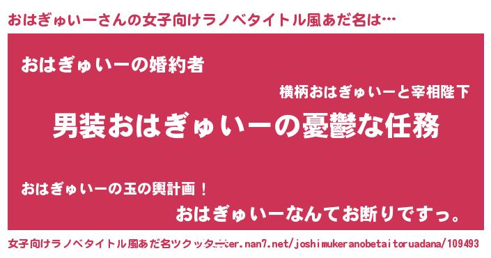 | 男性向けラノベタイトル風あだ名 | 『冴えないおはぎゅいーの育てかた』 |