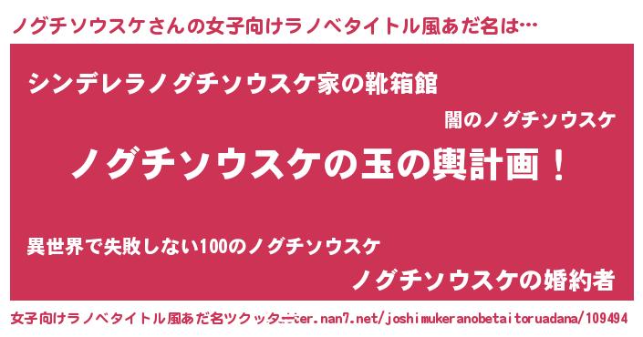 | 男性向けラノベタイトル風あだ名 | 『ノグチソウスケ~年齢イコール彼女いない歴の魔法使い~』 |