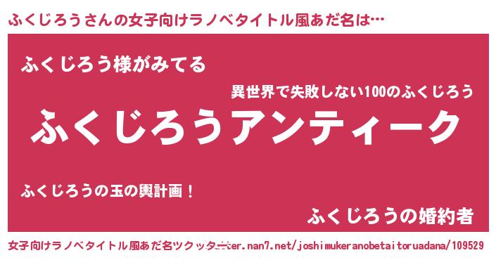 | 意味不明あだ名 | 『自称ふくじろう』『永久保存ふくじろう』 |