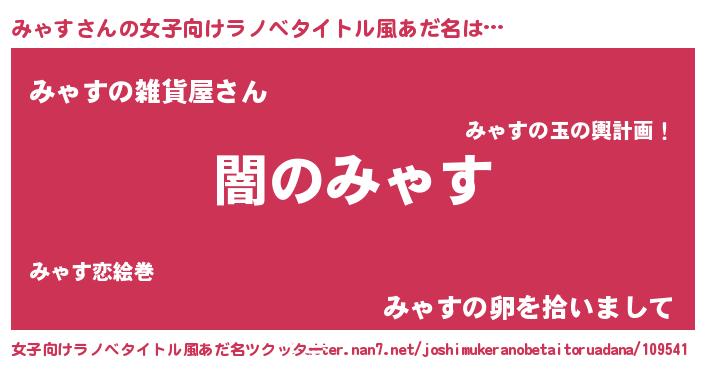 | 意味不明あだ名 | 『自称みゃす』『みゃすフォーエバー』 |
