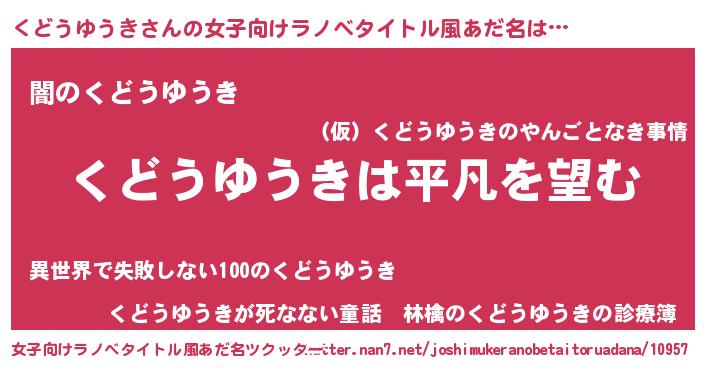 | 男性向けラノベタイトル風あだ名 | 『ダンジョンにくどうゆうきを求めるのは間違っているだろうか』 |