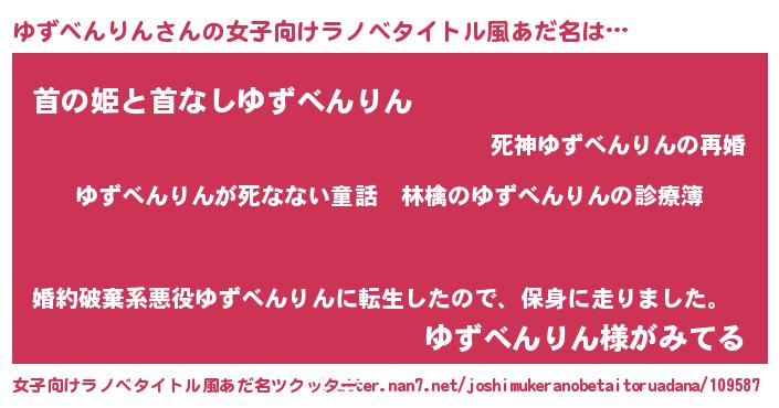 | 男性向けラノベタイトル風あだ名 | 『魔弾の王とゆずべんりん』 |