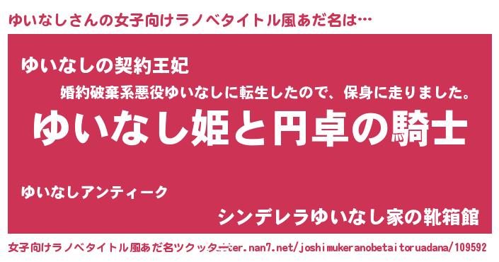 | 胡散臭い通販商品みたいなあだ名 | 『モテモテ間違いなし霊験あらたかなお札…その名も「ゆいなし」』 |