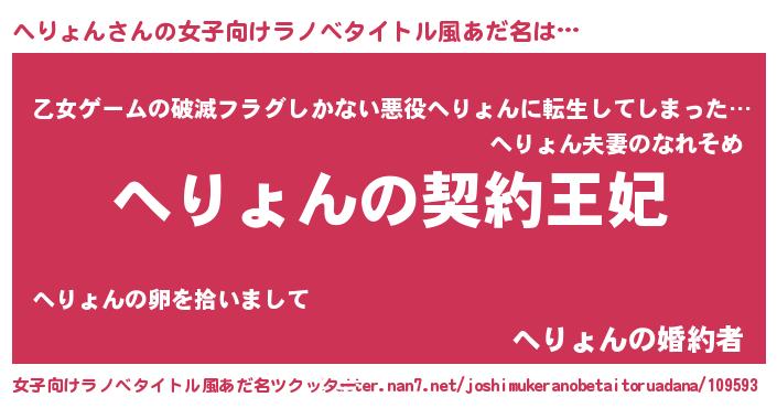 | 男性向けラノベタイトル風あだ名 | 『へりょんという概念が存在しない退屈な世界 』 |