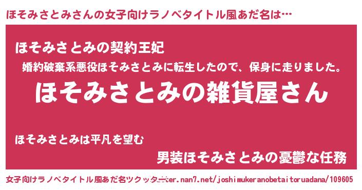 | 男性向けラノベタイトル風あだ名 | 『やはりほそみさとみの青春ラブコメはまちがっている 』 |