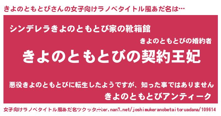 | 男性向けラノベタイトル風あだ名 | 『きよのともとびという概念が存在しない退屈な世界 』 |