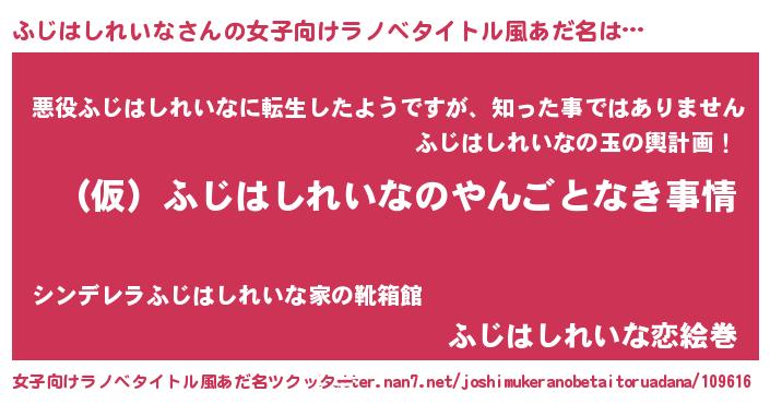 | 男性向けラノベタイトル風あだ名 | 『ふじはしれいなの憂鬱』 |