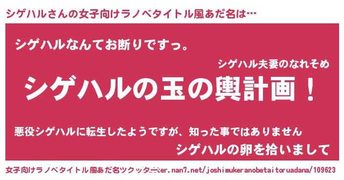 | 男性向けラノベタイトル風あだ名 | 『転生したらシゲハルだった件』 |