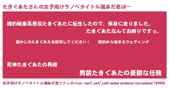 | 男性向けラノベタイトル風あだ名 | 『タキグアタアートオンライン』 |