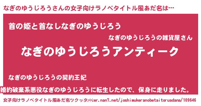 | 意味不明あだ名 | 『自称なぎのゆうじろう』 |
