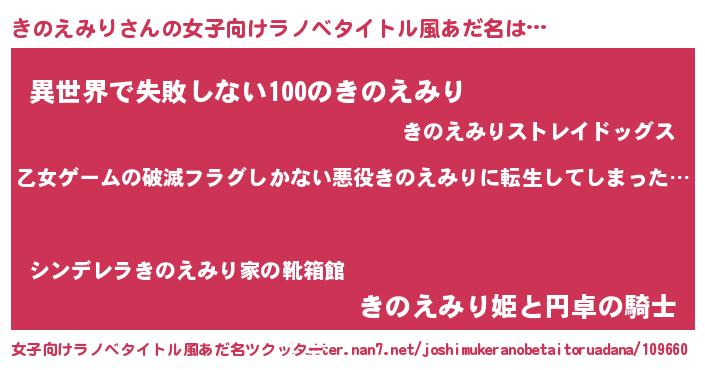 | 意味不明あだ名 | 『住所不定無職きのえみり(39歳)』 |