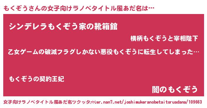 | 男性向けラノベタイトル風あだ名 | 『魔弾の王ともくぞう』『緋弾のモクゾウ』 |