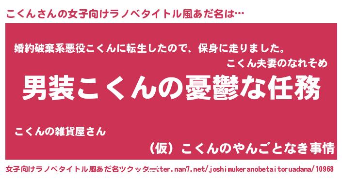 | ファンタジー風あだ名 | 『カークコクラー』『ユリコクヴァット』 |