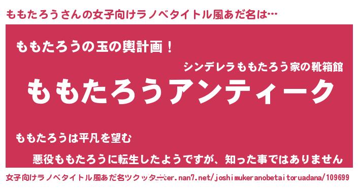 | 男性向けラノベタイトル風あだ名 | 『魔法科高校のももたろう』 |