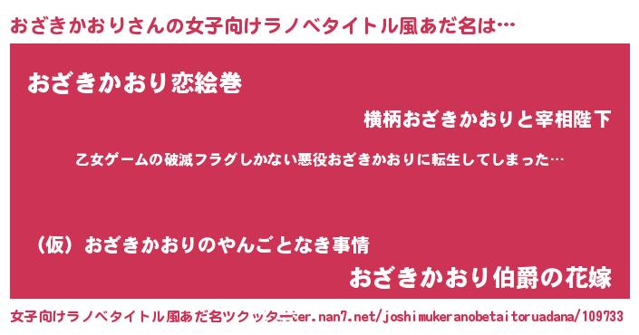 | 男性向けラノベタイトル風あだ名 | 『この素晴らしい世界におざきかおりを!』 |